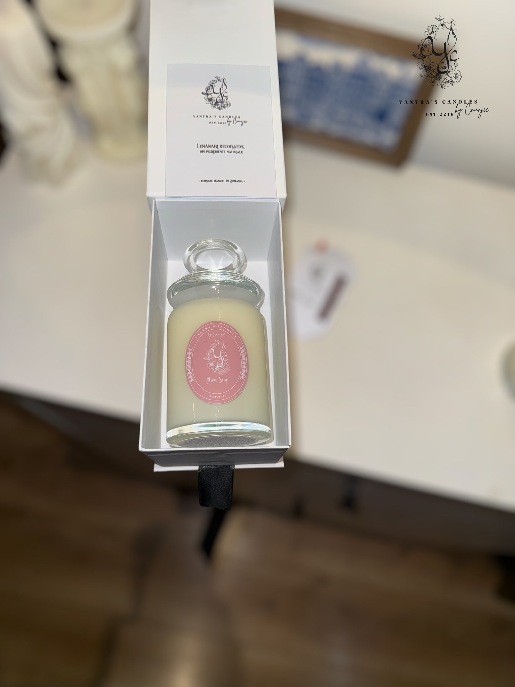 Ingrediente: ceară de soia, uleiuri esențiale naturale, fitil bumbac cerat cu ceară de soia