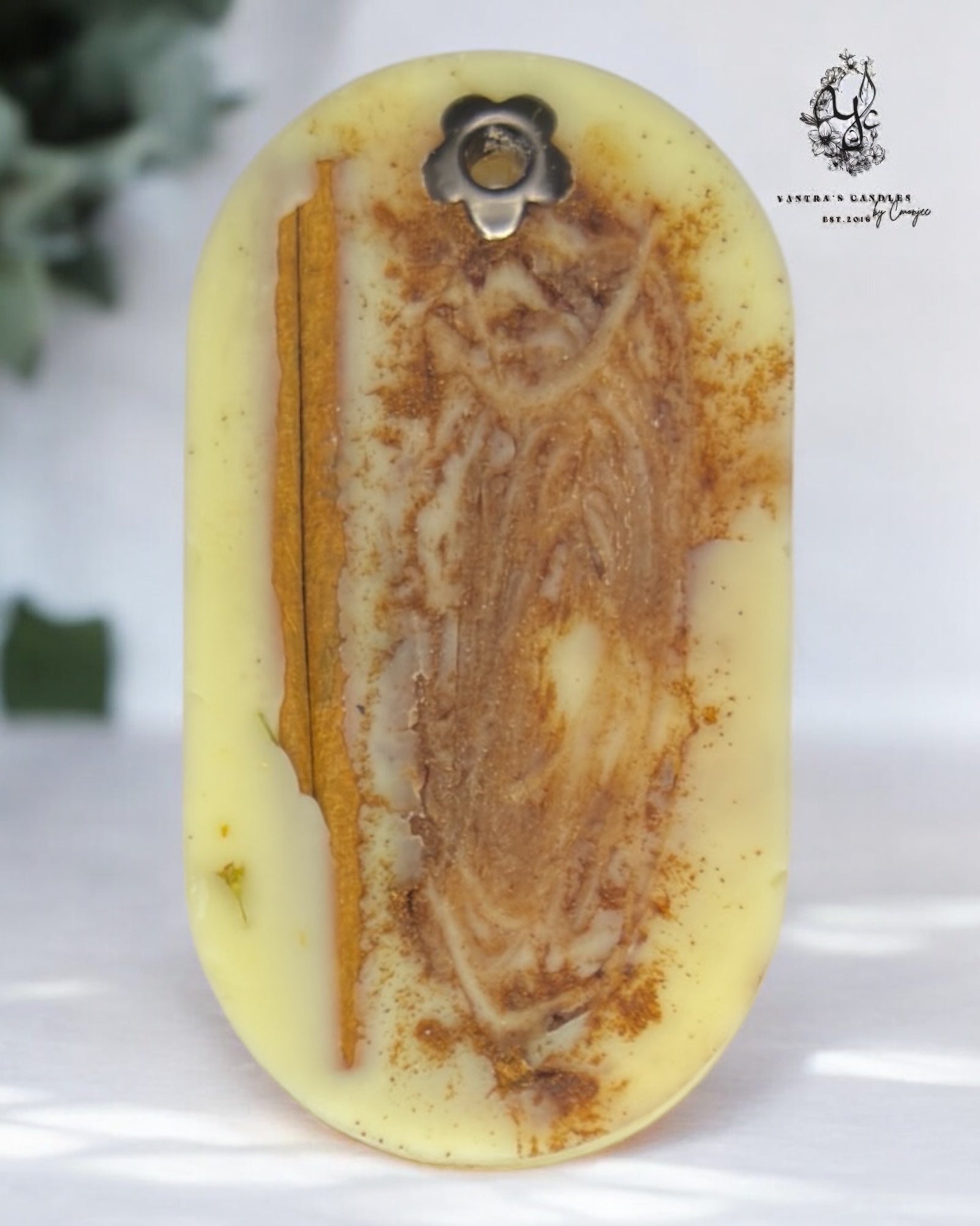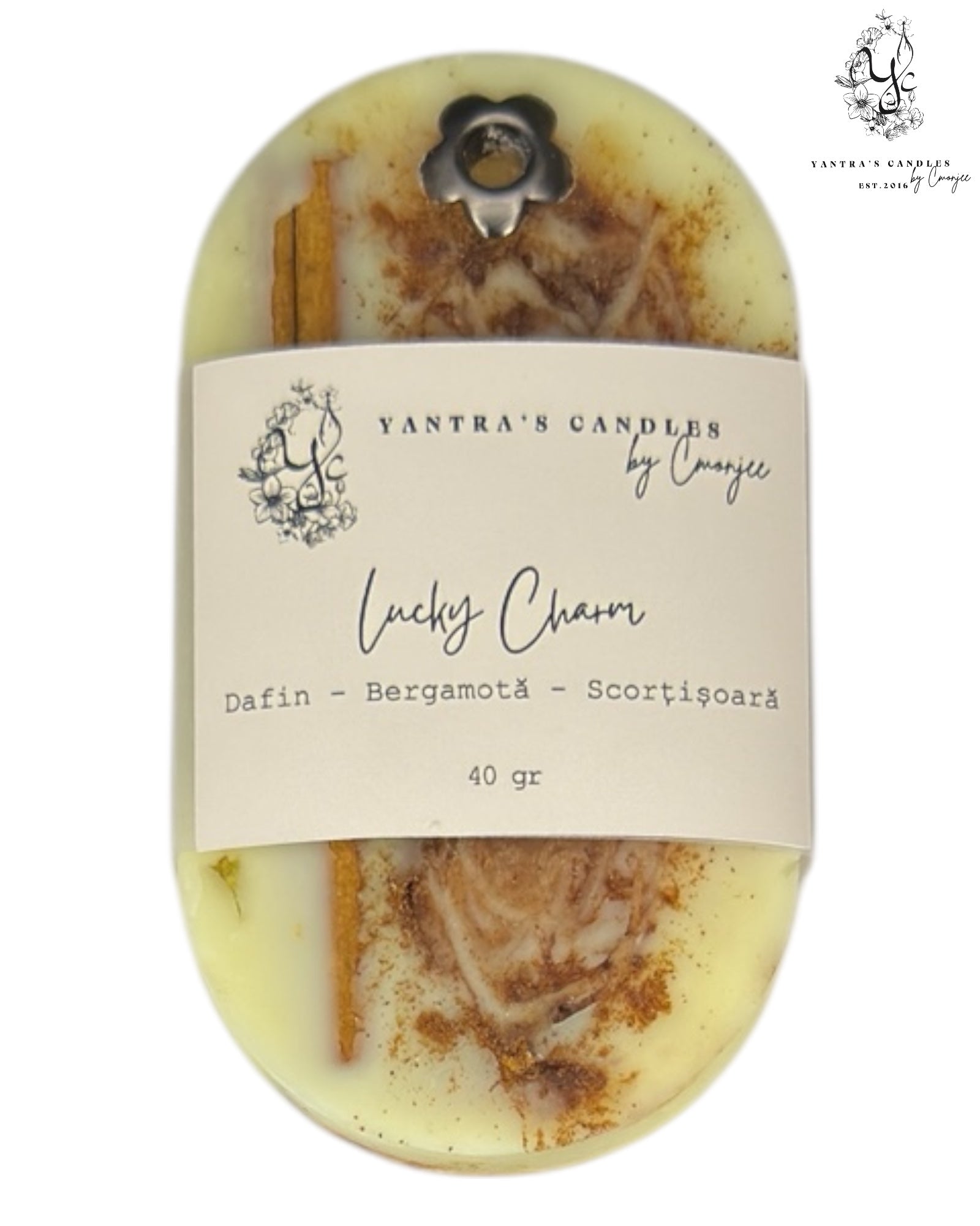 Ingrediente: ceară de soia, uleiuri esențiale naturale din dafin - laurus nobilis, bergamotă – citrus bergamia, scoțișoară- cinnamomum zeylanicum, scorțișoară baton și pulbere