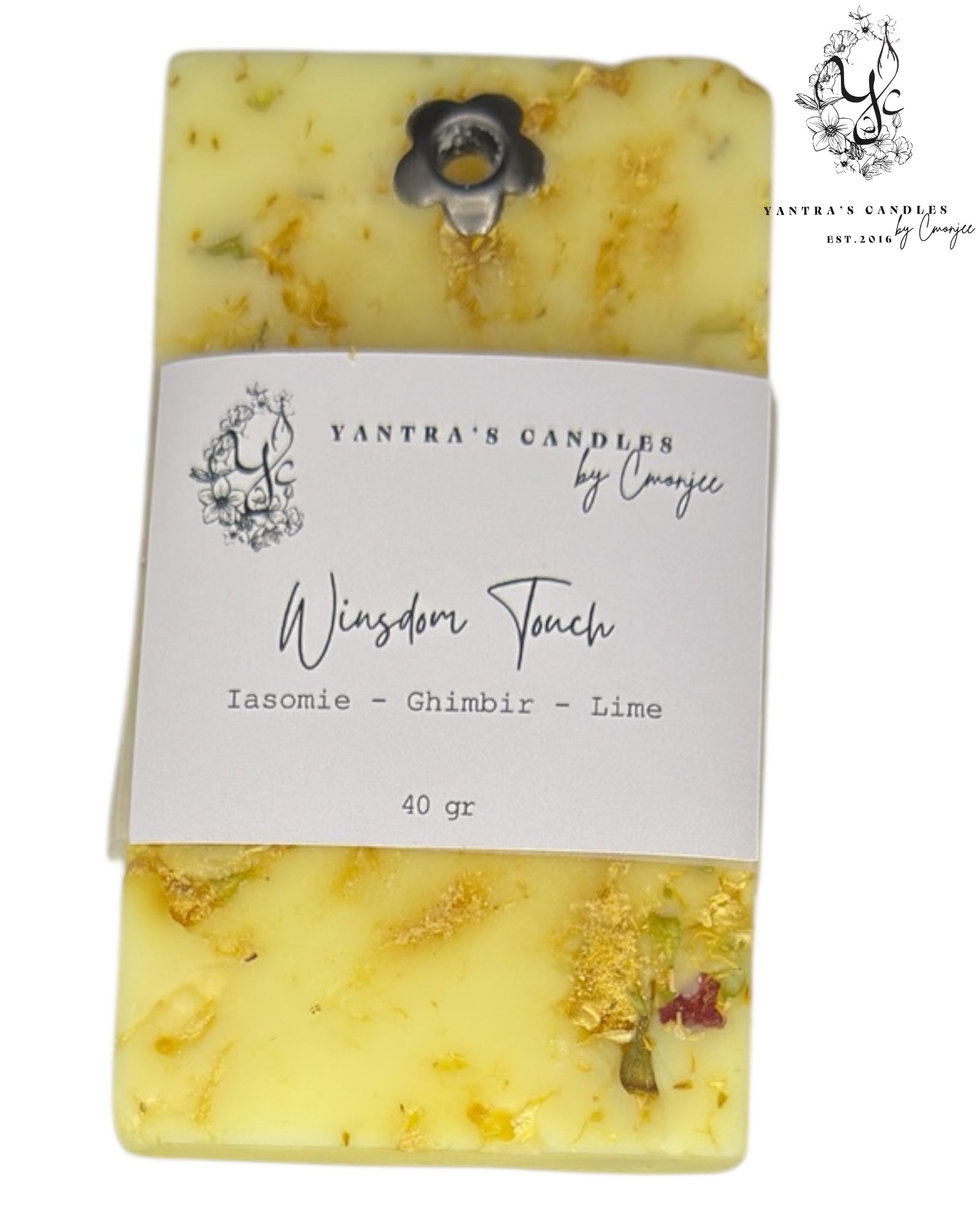 Ingrediente: ceară de soia, uleiuri esențiale naturale din iasomie-jasminum grandiflorum, ghimbir- zingiber officinale, lime- citrus aurantifolia, ghimbir pulbere, flori de iasomie