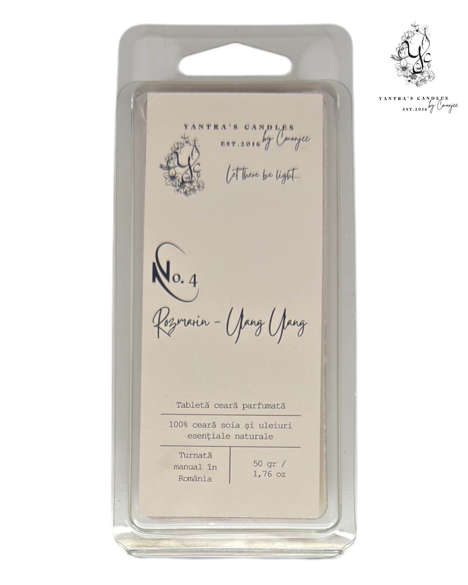 Ingrediente: ceară de soia, uleiuri esențiale naturale din rozmarin-rosmarinus officinalis, ylang-ylang- cananga odorata